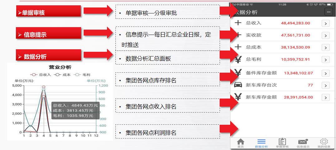 啟擎智能運(yùn)營(yíng)BI管理系統(tǒng)V2.8產(chǎn)品以結(jié)果數(shù)據(jù)為導(dǎo)向,基于啟擎ADMS平臺(tái)框架下,無(wú)縫對(duì)接各業(yè)務(wù)模塊,為管理層提供一體化運(yùn)營(yíng)分析為宗旨的便捷性APP平臺(tái)。產(chǎn)品包含整車銷售版,售后維修版、門店綜合版和集團(tuán)中央管控版,適用于蘋果IOS和安卓Android。